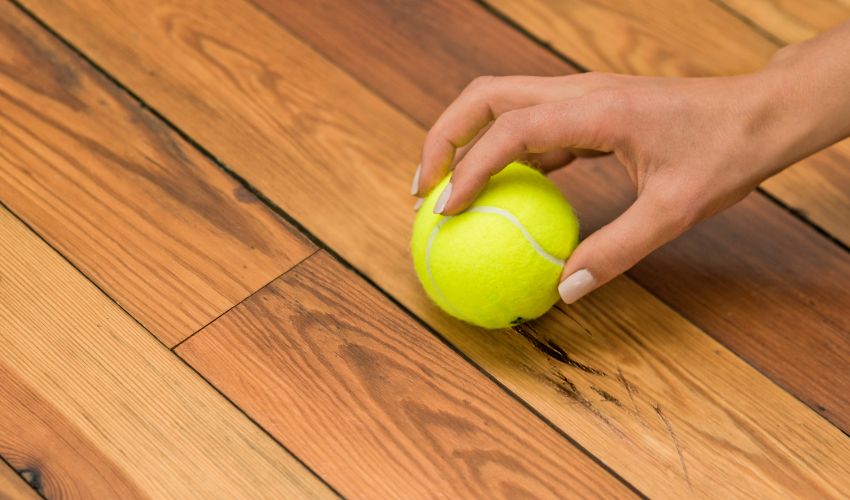 Goresan ringan pada lantai vinyl bisa diatasi dengan beberapa cara sederhana. Gunakan bola tenis untuk menggosok goresan dengan gerakan melingkar. Karet pada bola tenis akan membantu mengangkat goresan tanpa merusak permukaan.